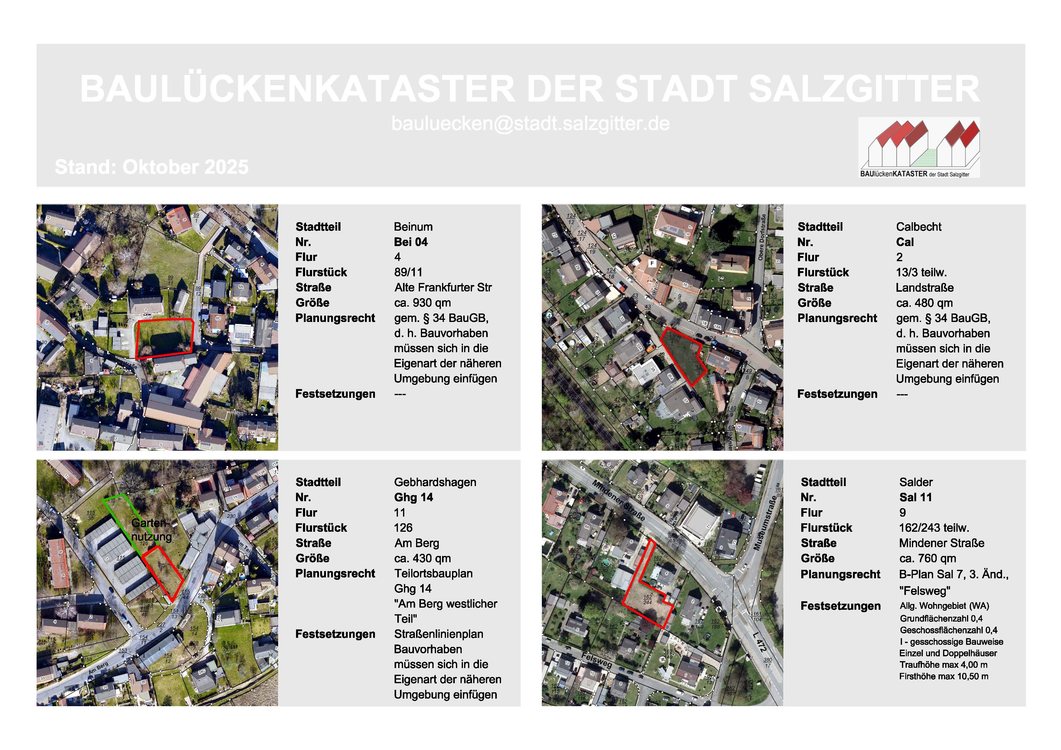 - Trotz flächendeckender Erhebung kann die Baulückenbörse jedoch keinen Anspruch auf Vollständigkeit erheben. Es sind lediglich die Baulücken aufgeführt, deren Eigentümer/innen zugestimmt haben.