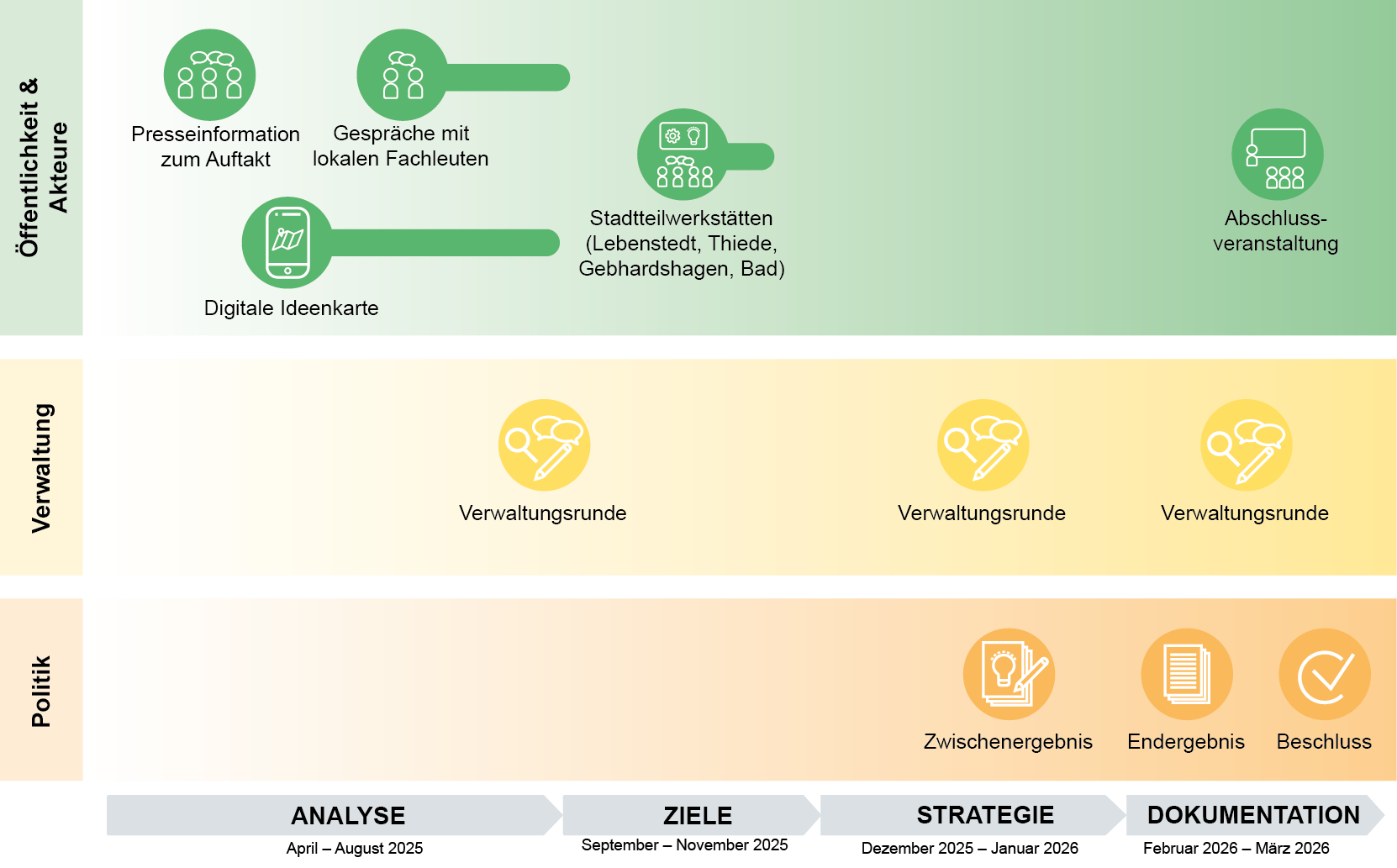 Das ISEK ist eine informelle, nicht rechtsverbindliche Planung, die als Selbstbindungsinstrument vom Rat der Stadt Salzgitter beschlossen wird. Es bereitet die Stadtentwicklung einer Kommune strategisch vor und definiert den Rahmen und die grundlegenden Ziele für weitere gesamtstädtische und stadtteilbezogene Entwicklungsplanungen und -konzepte. Das ISEK gilt somit als wichtige Handlungsmaxime und Baustein verschiedener städtischer Planungsprozesse. Dazu zählen u.a. der Verkehrsentwicklungsplan, der Flächennutzungsplan 2040+ sowie viele weitere städtische Konzepte. Mit diesem Instrument nehmen Städte und Gemeinden eine aktive und steuernde Rolle ein. Der konkrete Gebietsbezug bietet eine gute Grundlage für die problemorientierte räumliche und strategische Lösungsentwicklung.